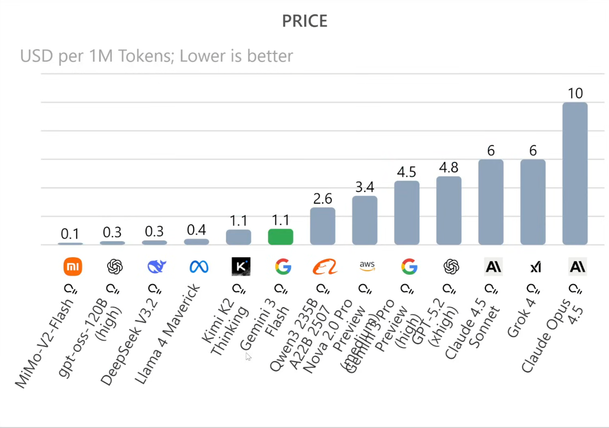 Ein Blick auf die aktuellen Token-Kosten (USD pro 1 Million Token) zeigt die Dominanz von Gemini 3 Flash. Mit einem Preis von ca. 1,10 USD liegt es gleichauf mit sehr viel kleineren Modellen, bietet aber die Intelligenz und Multimodalität eines Flaggschiff-Modells. Zum Vergleich: Ein GPT-5-Level Modell oder Claude Opus 4.5 kosten oft das Sechs- bis Zehnfache.