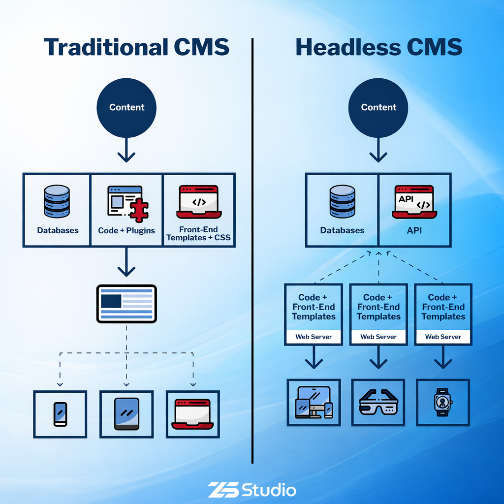 | Kriterium | Traditionelles CMS | Headless CMS |